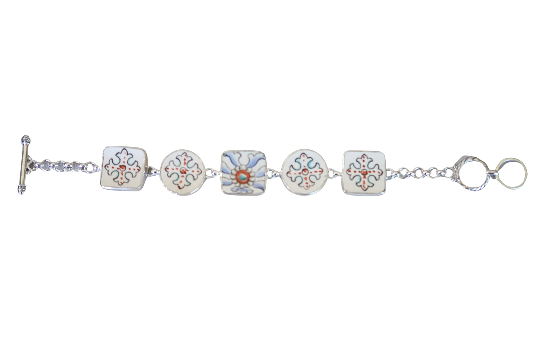 Royal Russian Rectangle Bracelet, set in sterling silver. Created from broken china.