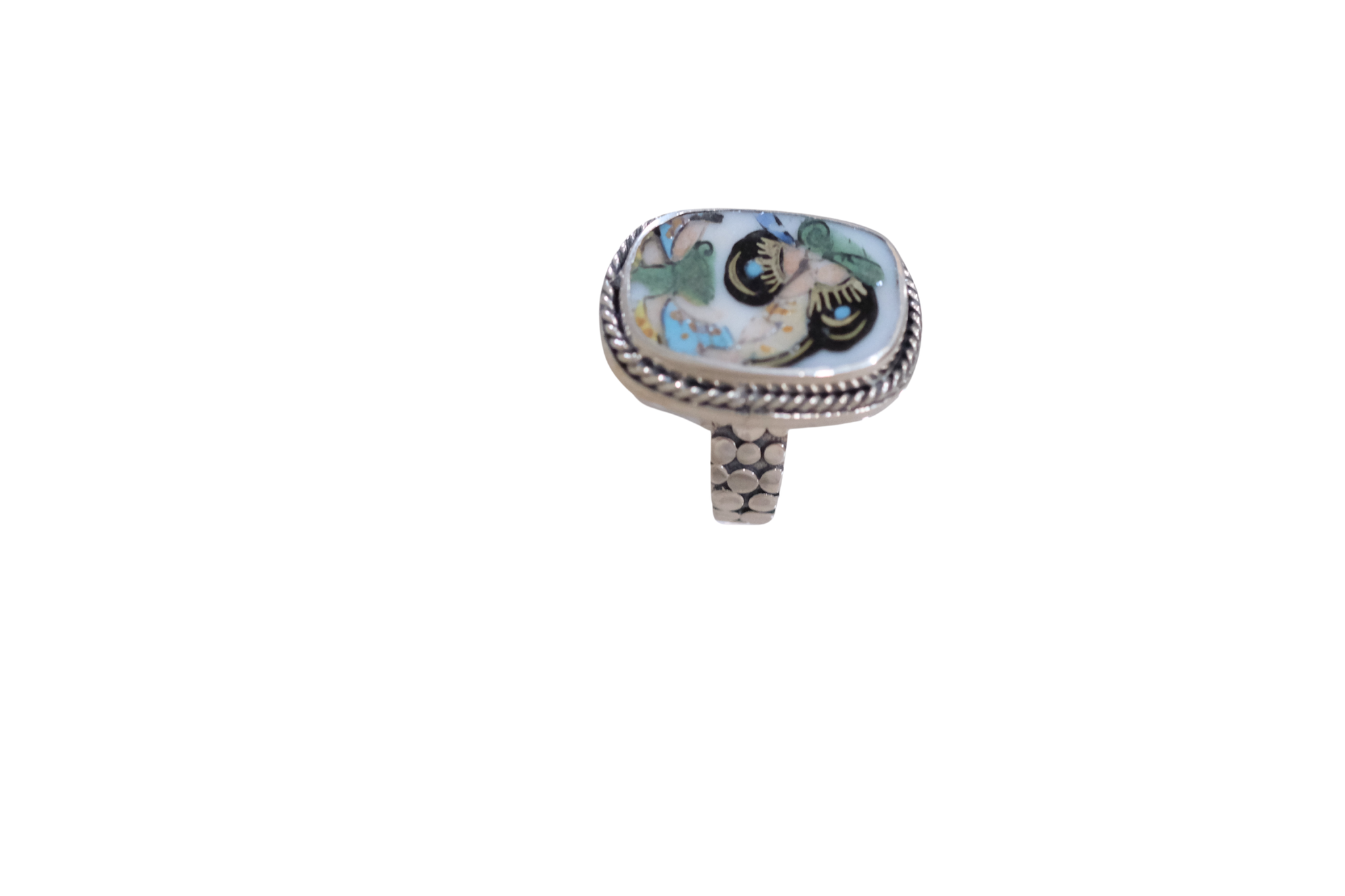 Size 5.5 Eclectic Butterfly Ring, set in sterling silver. Created from broken china.