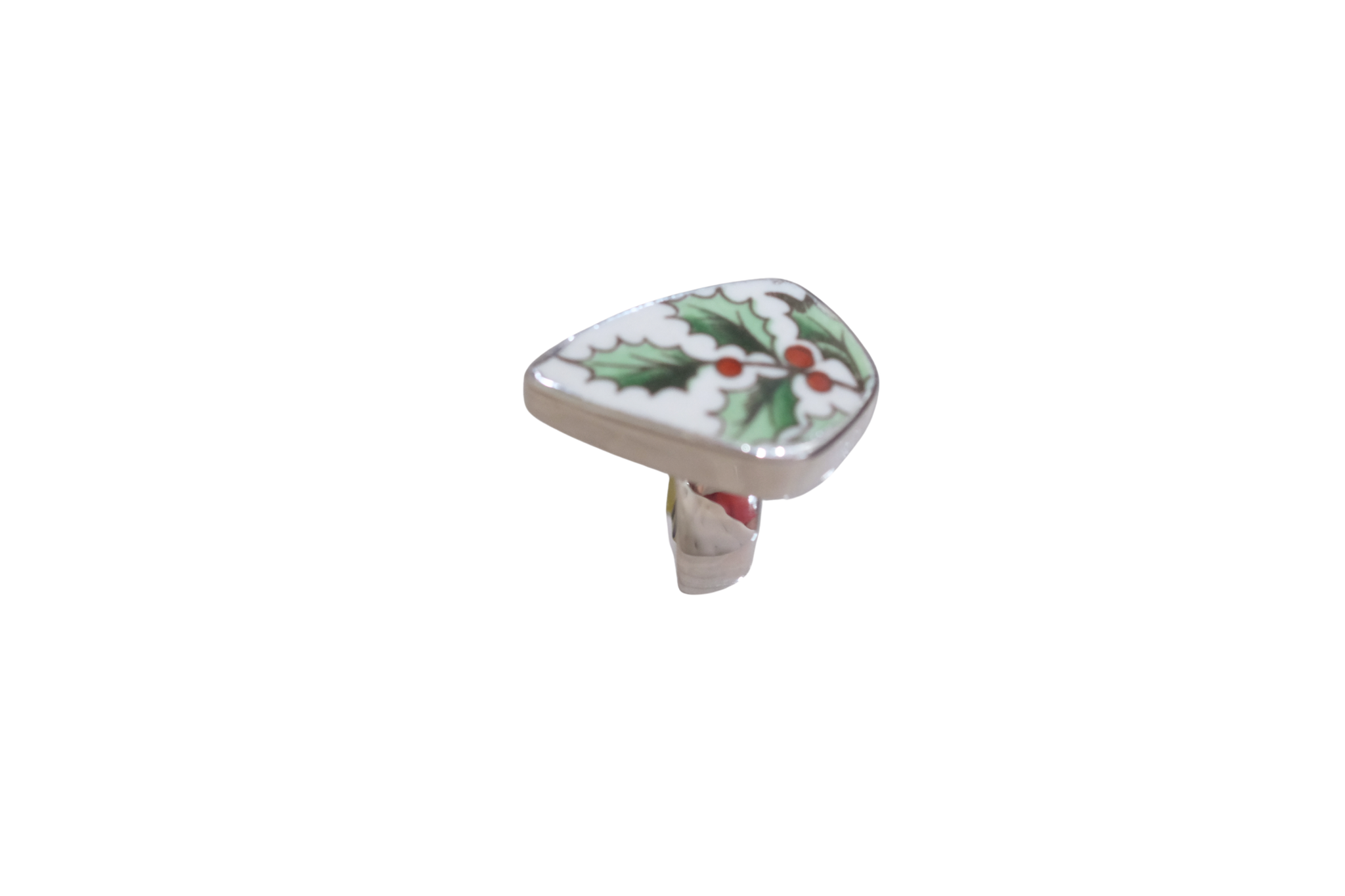 Size 5 Spode Holly Ring, set in sterling silver. Created from broken china.