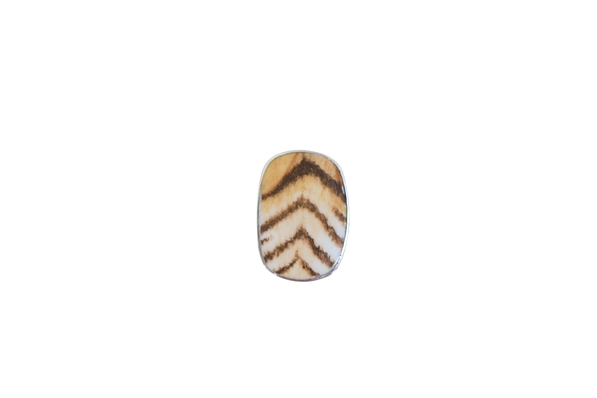 Size 6 Tiger Stripe Ring, set in sterling silver. Created from broken china.