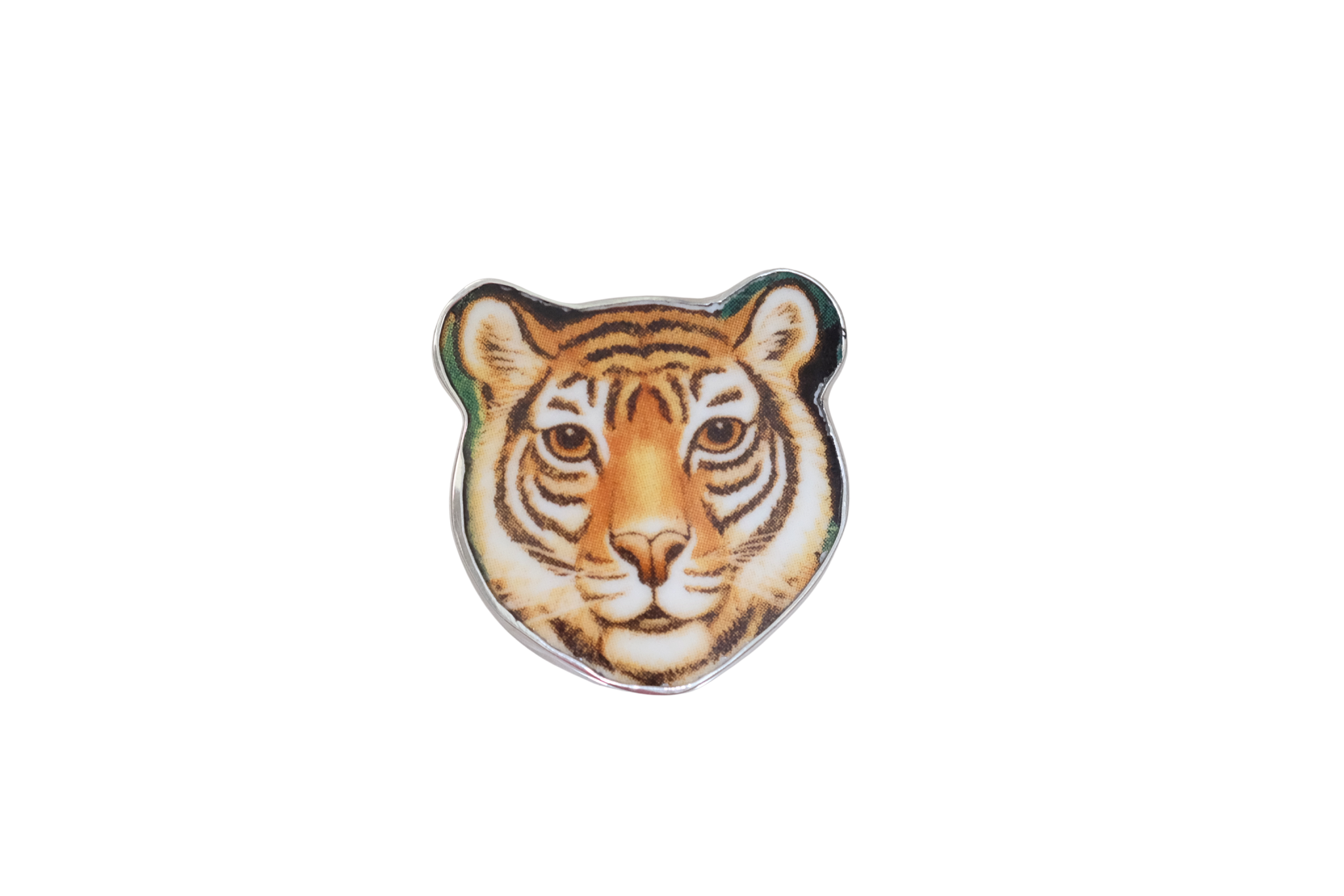 Size 7 Tiger Face Ring, set in sterling silver. Created from broken china.