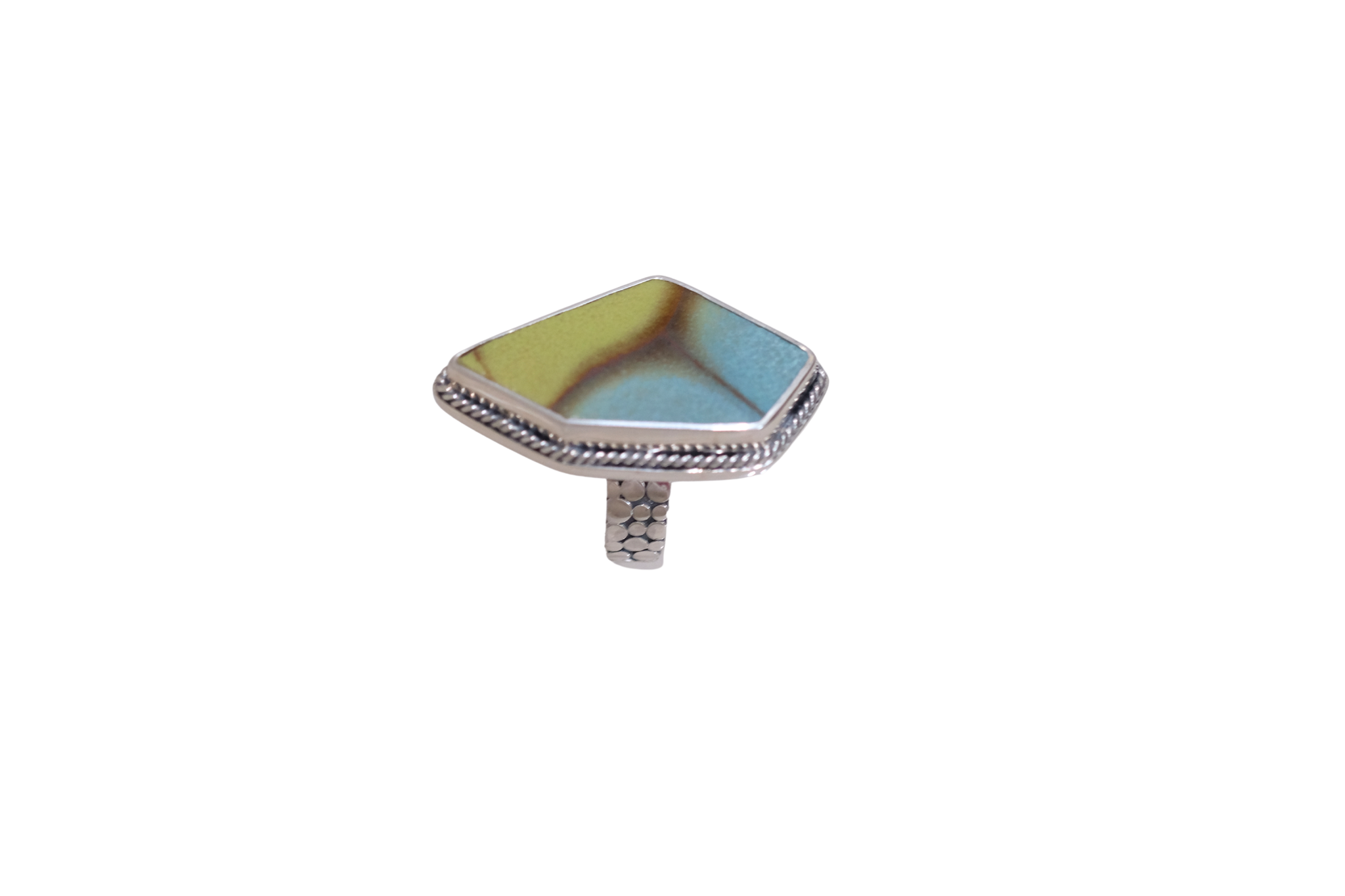 Size 8.5 Retro Vibes Ring. Set in sterling silver. Created from broken china.