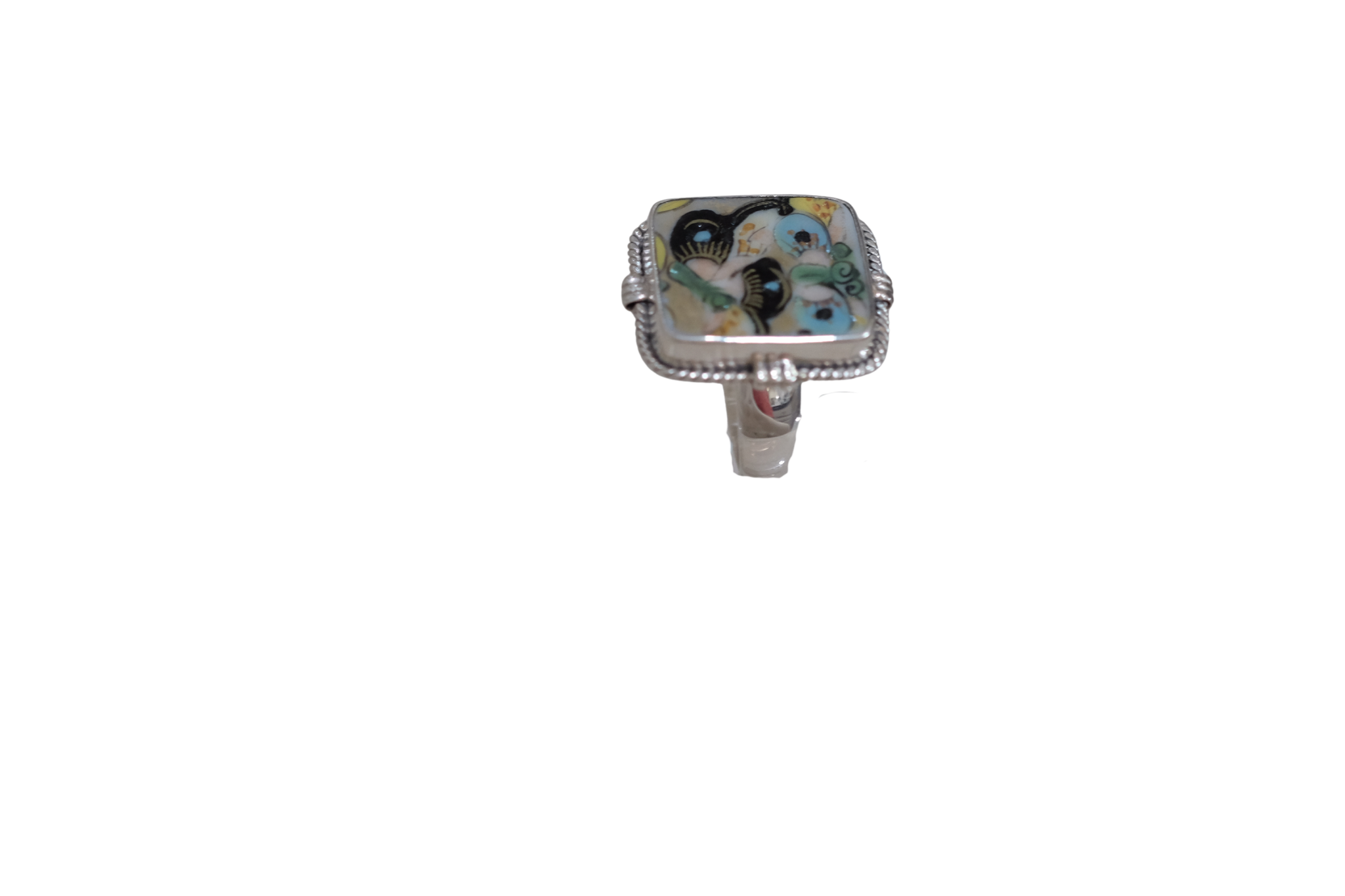 Size 8 Butterfly Punch Ring, set in sterling silver. Created from broken china.
