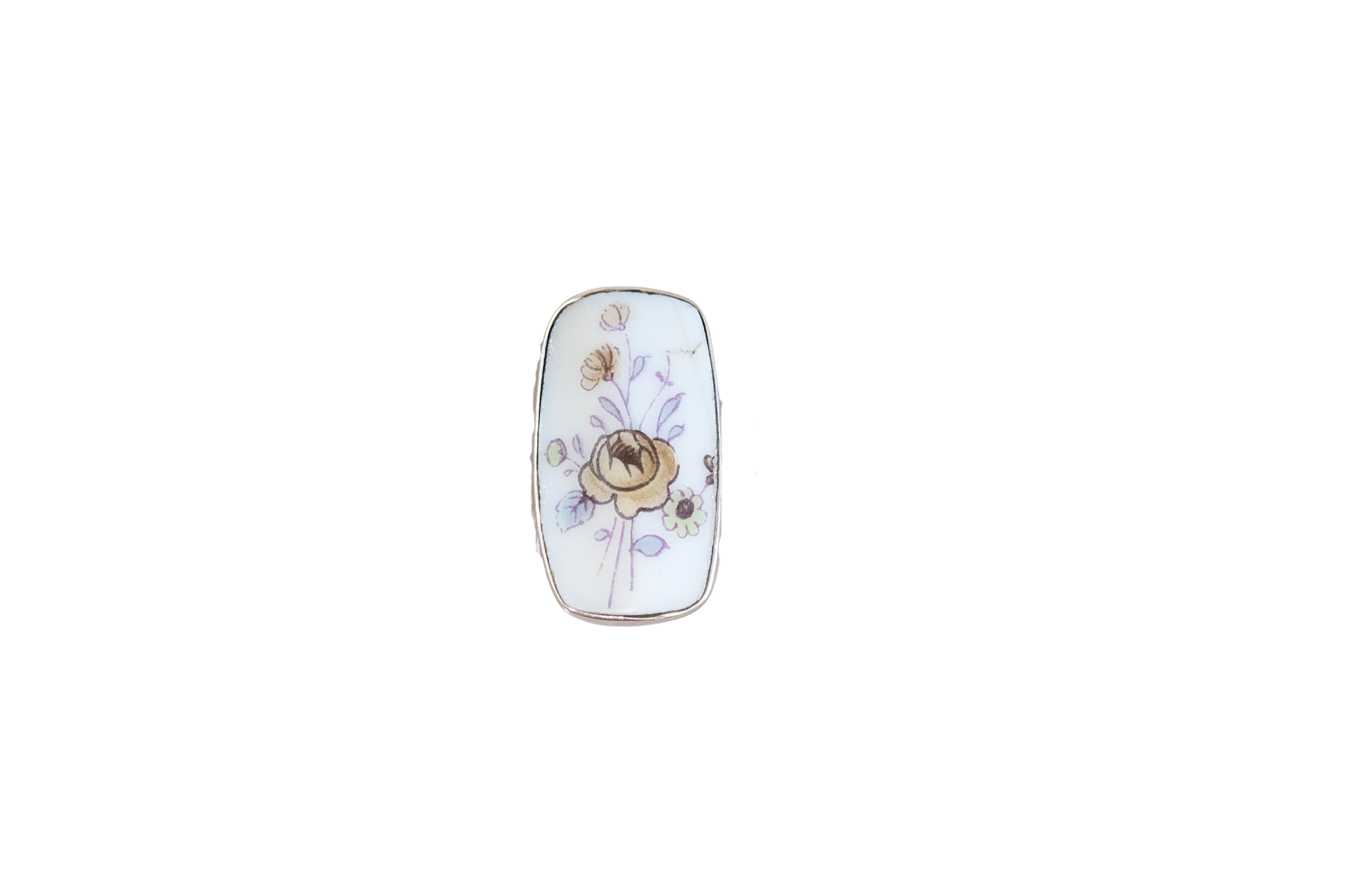 Size 9.5 Hint of Lavender Ring. Set in sterling silver. Created from broken china.