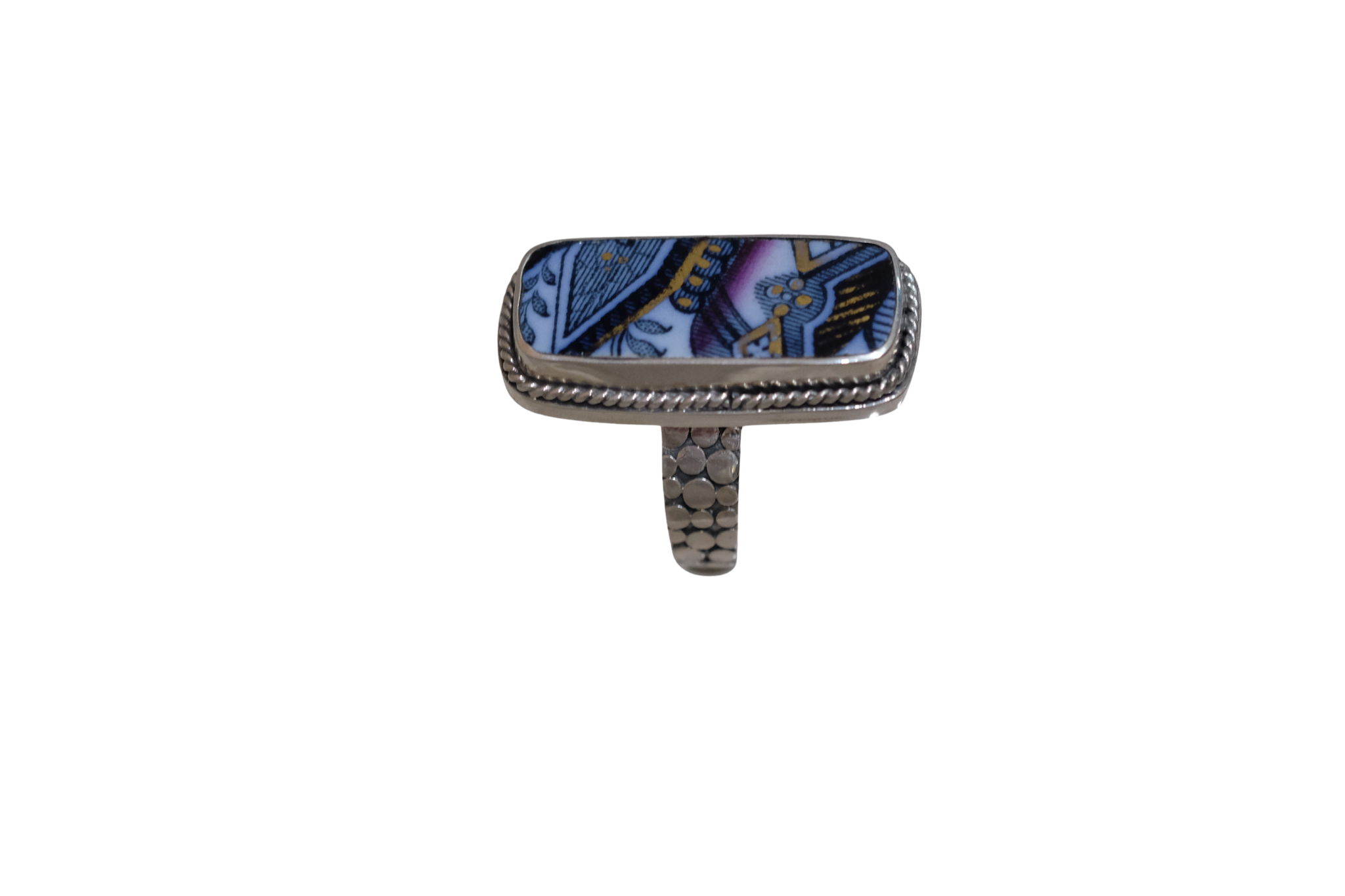 Size 9.5 Shades of Purple Ring. Set in sterling silver. Created from broken china.