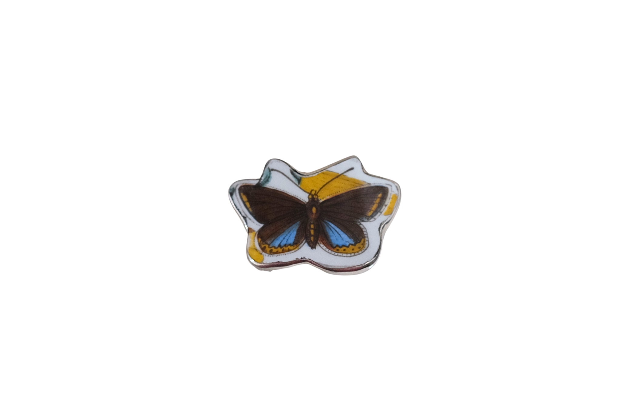 Size 9 Blue Butterfly Ring. Set in sterling silver. Created from broken china.