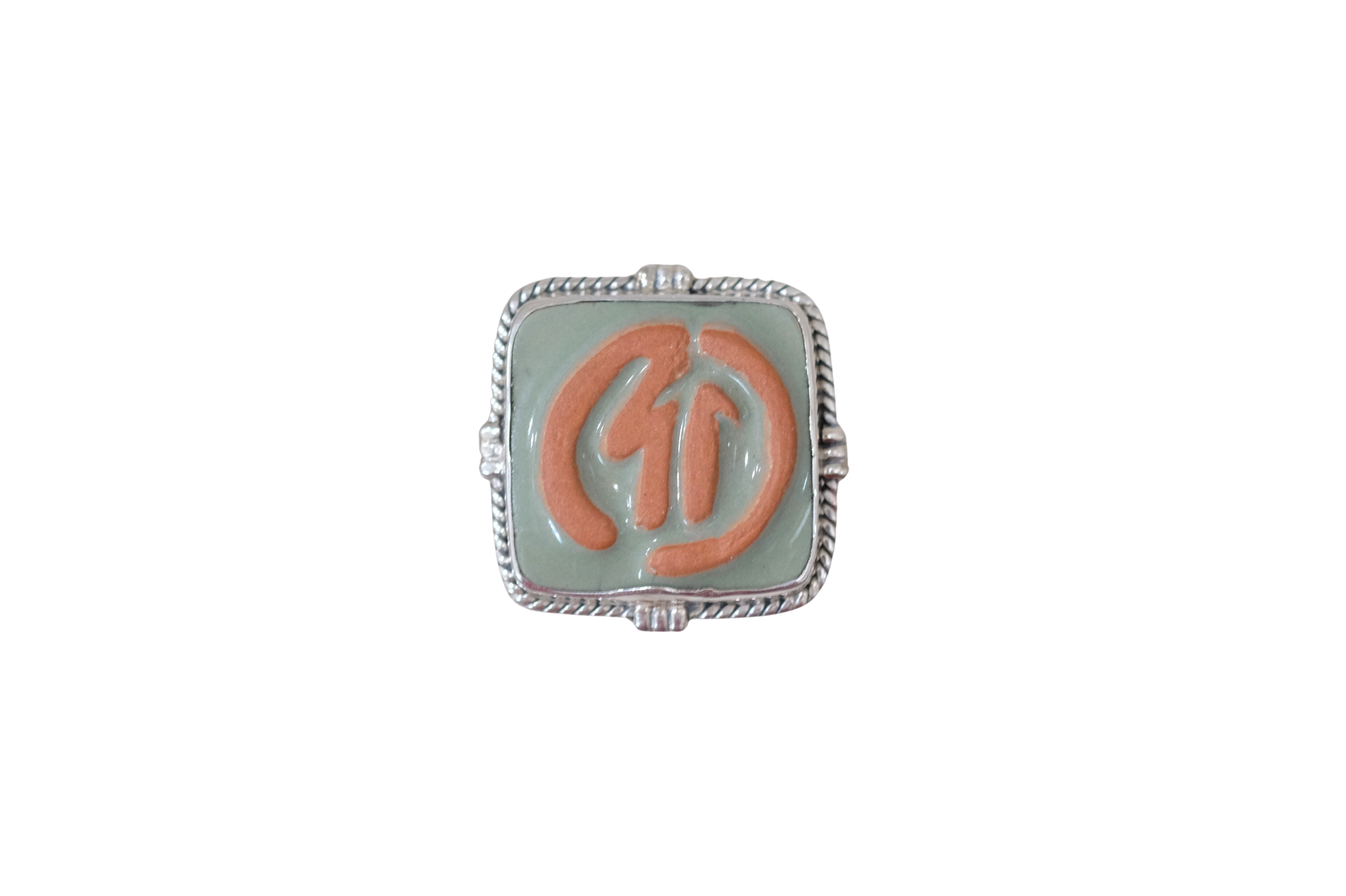 Size 9 Ranch Brand Ring. Set in sterling silver. Created from broken china.