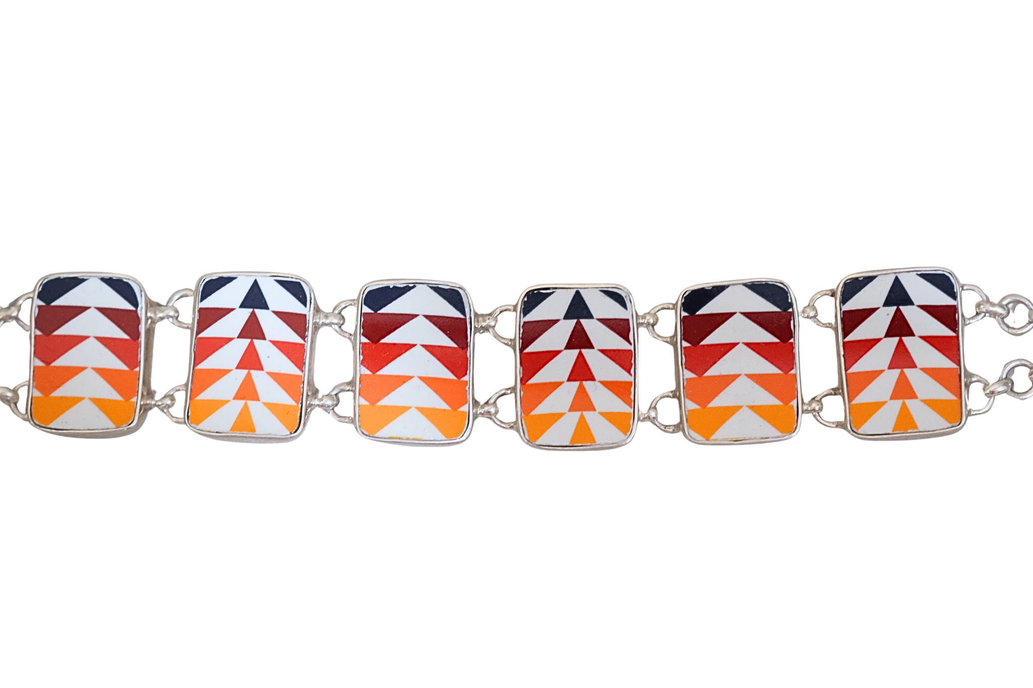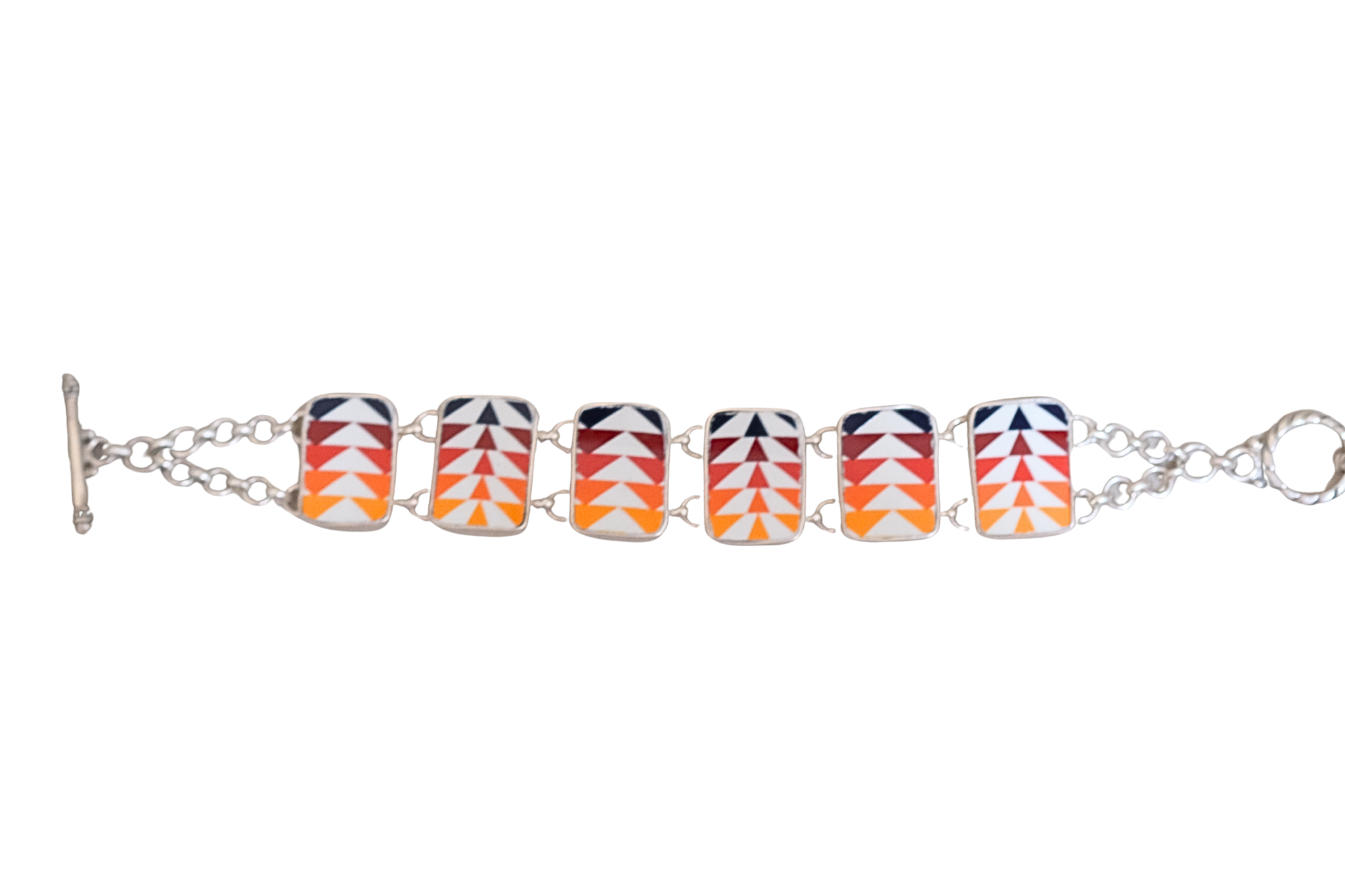 Rectangle Pendleton Bracelet, set in sterling silver. Created from broken china.