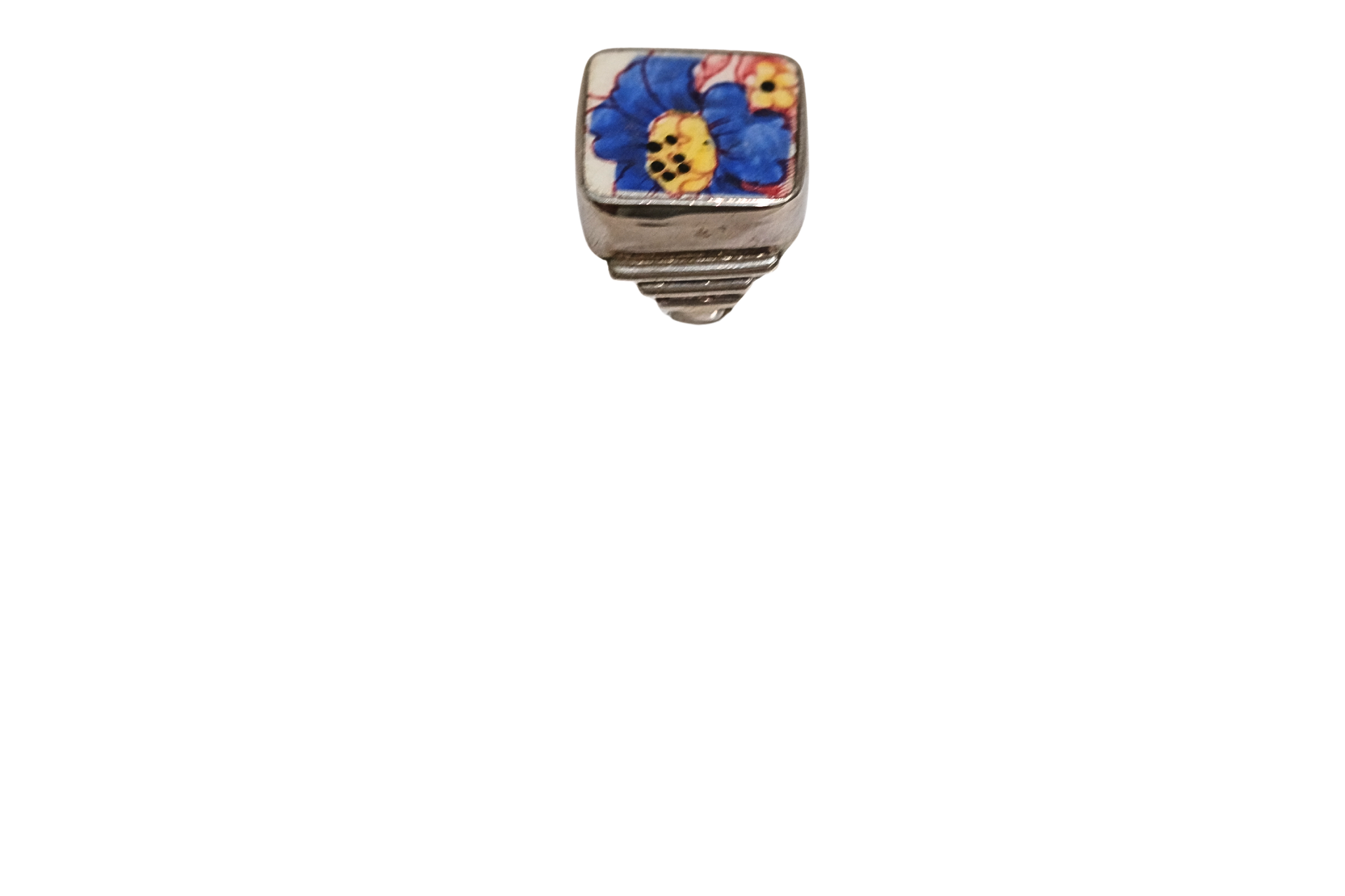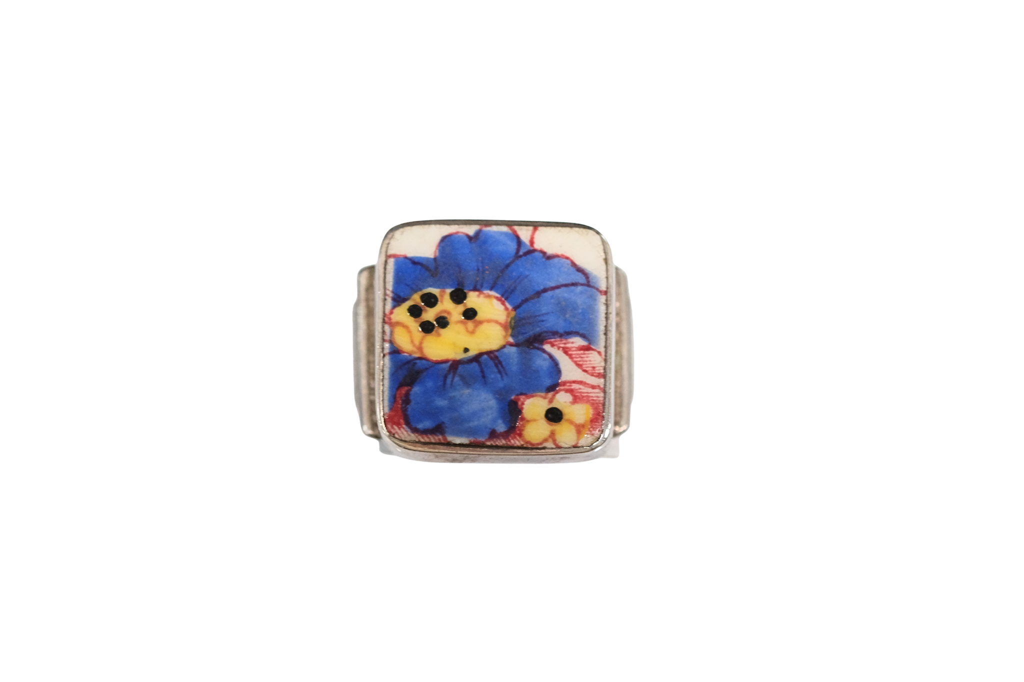 Size 6 Blue Petals Ring, set in sterling silver. Created from broken china.