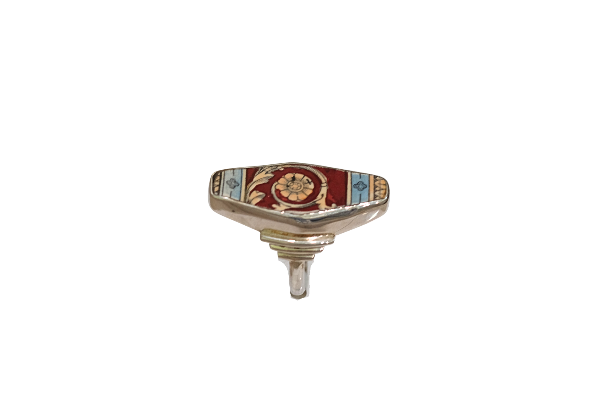 Size 8.5 Elongated Turquoise Stripes Ring, set in sterling silver. Created from broken china.