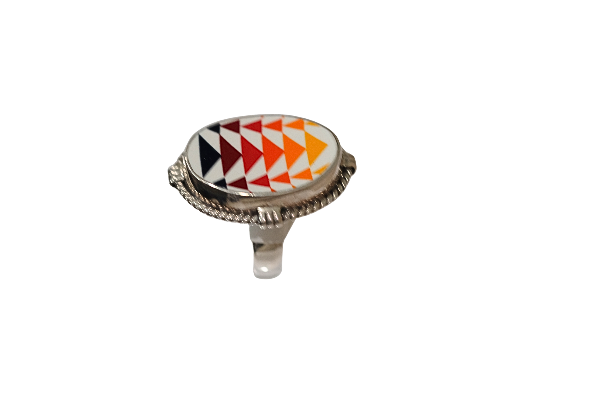 Size 9.5 Oval Pendleton Ring, set in sterling silver. Created from broken china.