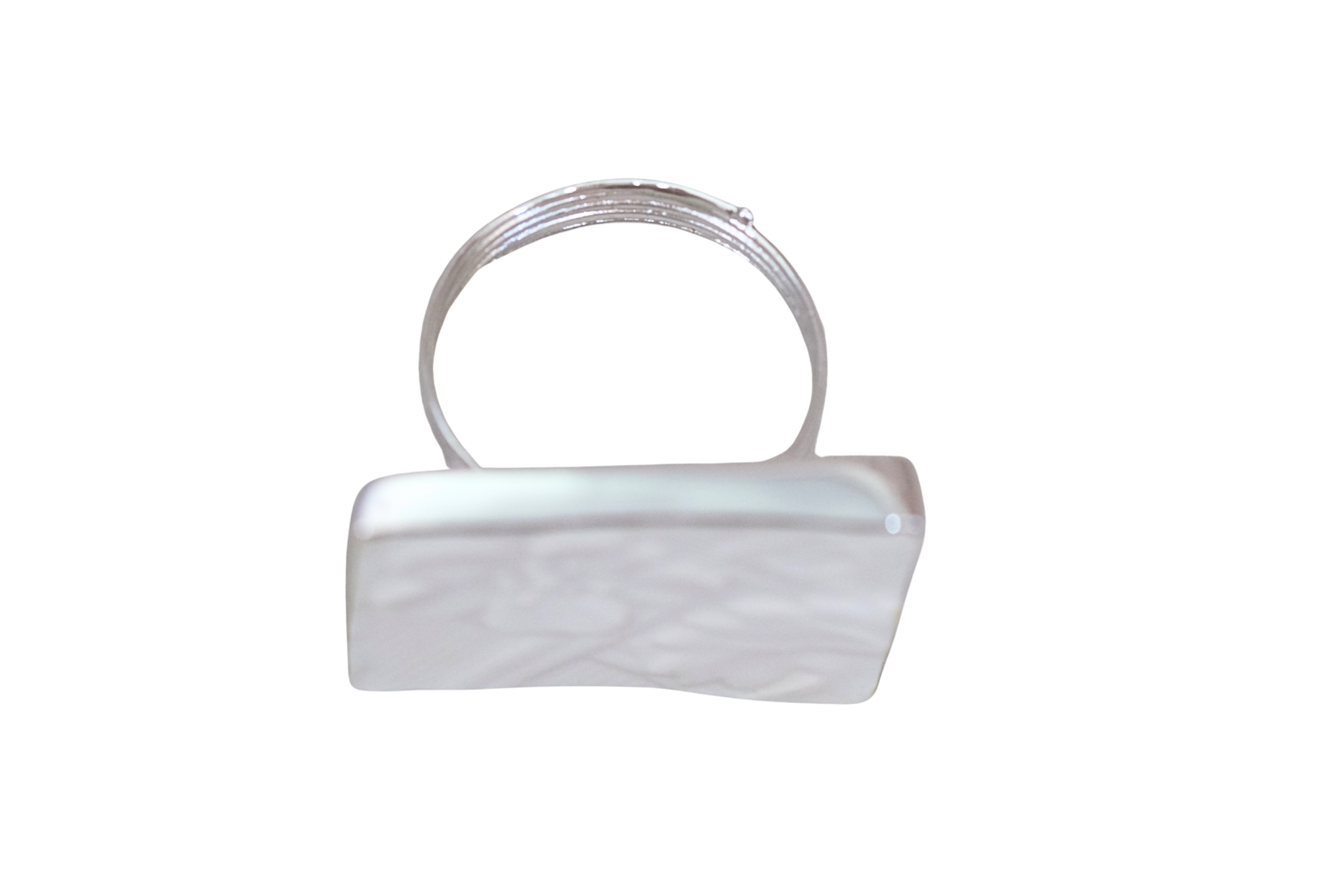 White Textured Napkin Ring #2. Rhodium plated over brass. Made from Re-purposed dishes.